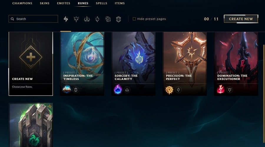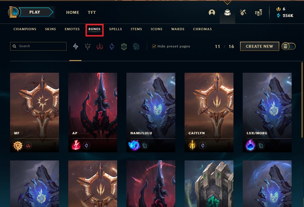 Newer players will find it overwhelming to understand all the available Runes and manually set each Rune page before the game starts. Therefore, an option to create new Rune pages before queuing for a match is available. The game offers three Rune pages for free. However, there are over 140 champions in the game, and three pages are not enough for all of them.