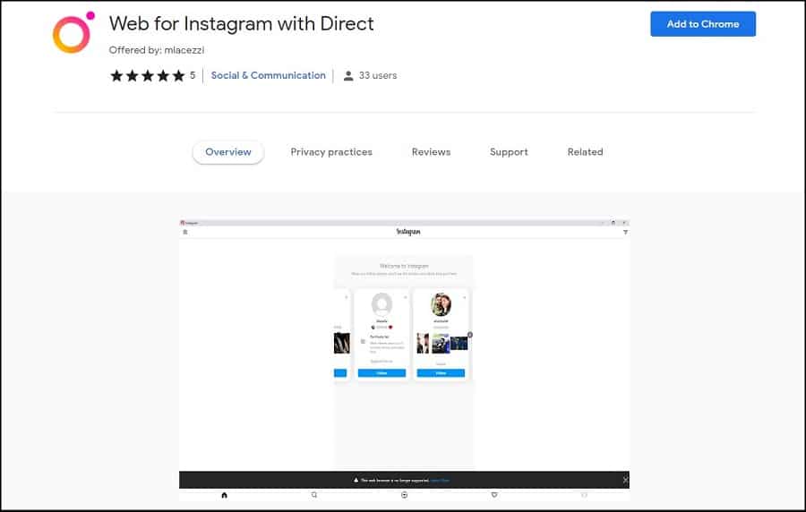 Web for Instagram with Direct is an IG extension for people who want to get the most features out of an extension application. This light extension has a file size of only 354KiB and is available on Google Webstore.