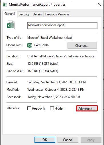 File attributes define how a file can be accessed, shared, or modified. Sometimes, the ‘sharing violation’ error in Excel occurs if the file attribute options are not selected correctly. Follow the below steps to check and change the file attributes: