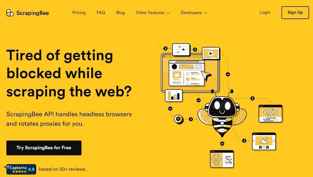 Scraping Bee is another all-purpose data scraping API. This scraping program has two functions, just like Scraper API. If the scraper is not proxy-integrated, you might need to get a proxy while utilizing such a scraper. Thankfully, Scraping Bee has a rotating proxy built into it.