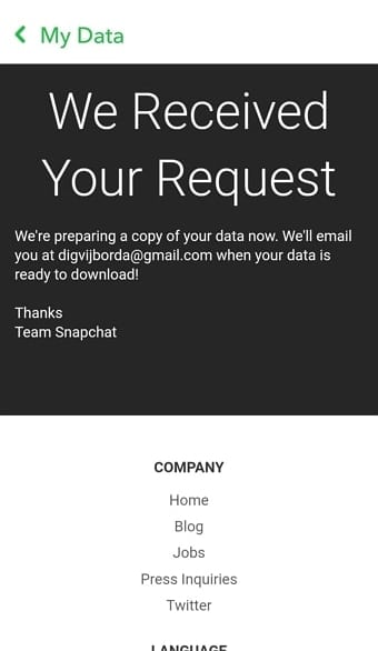 Step 2: Once your logging is successful, you’ll be redirected to the My Data page. From here, you can request that Snapchat access your account data.
