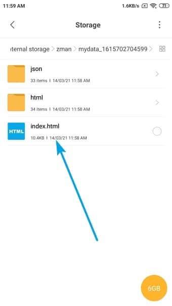 Step 5: On the sent email, tap on the download link “Click here.” In the next window (My Data page), tap on mydata.zip.