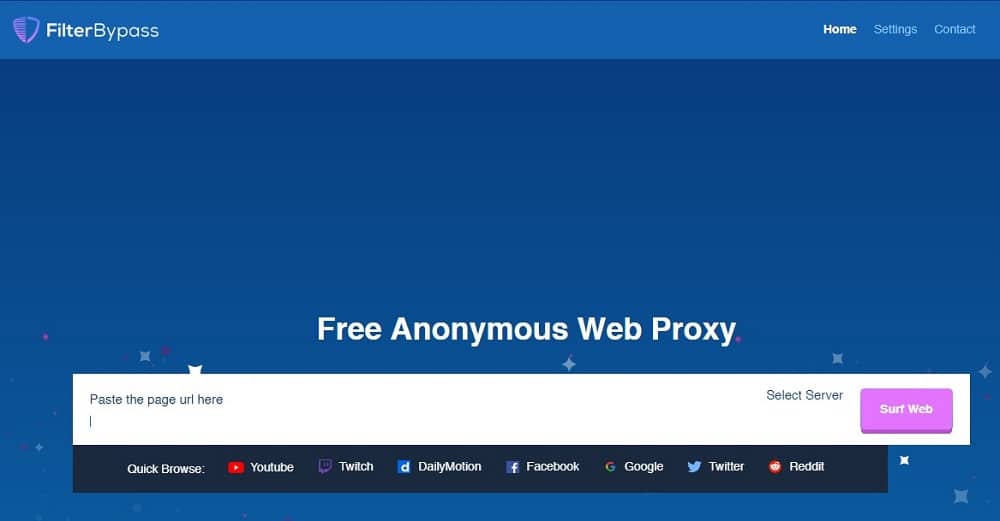 The FilterByPass is basically a proxified website that you can use to access websites on the Internet. All of your actions will be done via their website. As you send a web request, it routes it via its proxy servers and then returns the response within its own Interface.