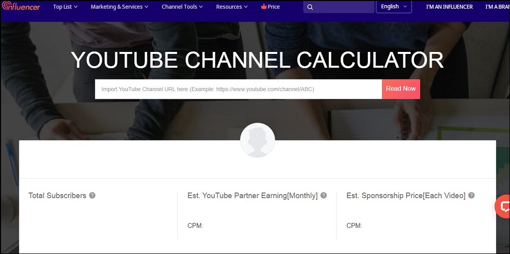 The Influencer marketing hub is a platform that you can use to get the estimated total earnings of a channel. By entering the YouTube channel URL in the input box, you will get the results of the total number of subscribers & video views, estimated earnings, and average earnings per video.