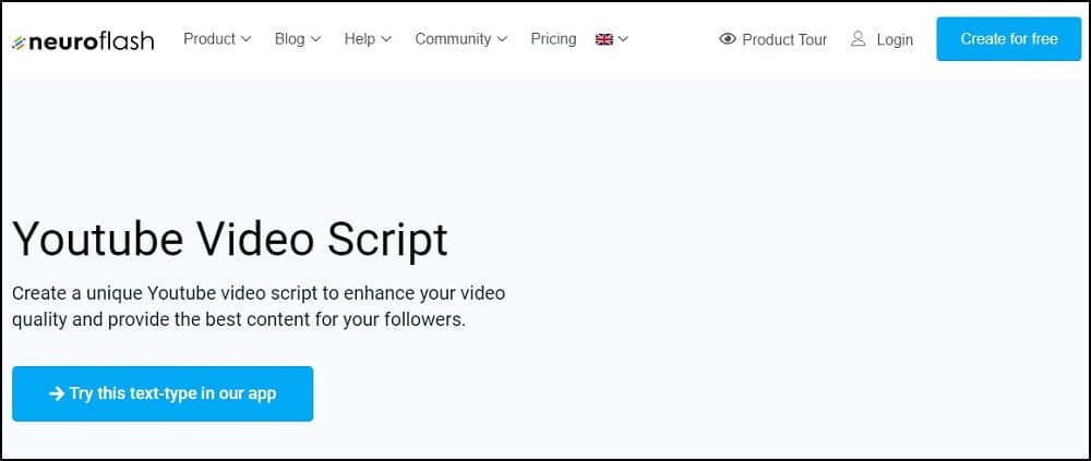 Are you overwhelmed and wondering what content to provide your YouTube subscribers? Then using the Neuroflash YouTube Video Script generator would be the perfect solution. It lets you create a unique video script to provide the best content for your followers.